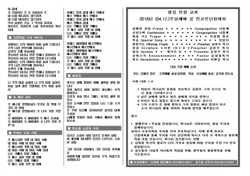2016년 4월 17일 야외예배 주보